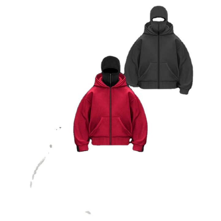 New Stylish Custom Stonewashed Embroidered Print Balaclava Hoodie Heavyweight Waterproof Unisex 100% Cotton Winter Men Full Zip