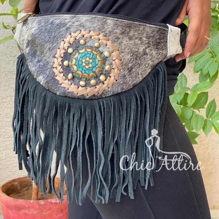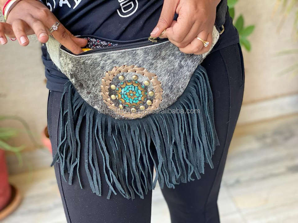 Product name:Hand Stitched Cowhide Fur Leather Hip Bags