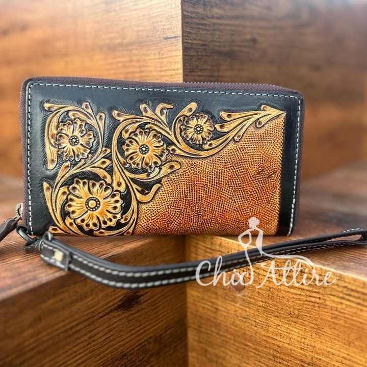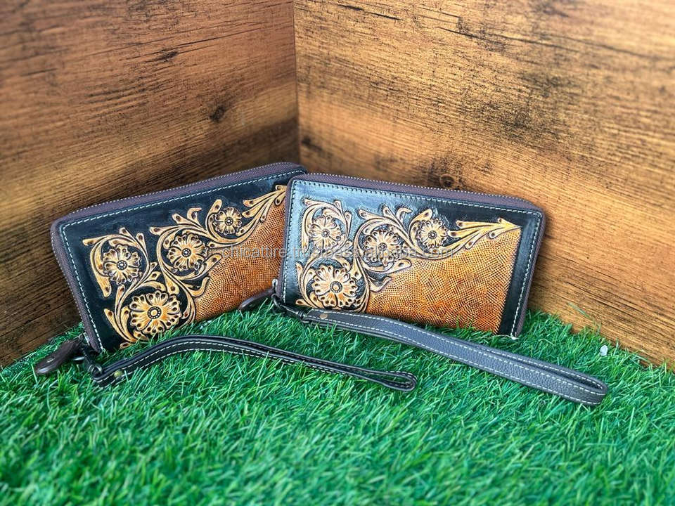 New Stylish Handcrafted Tooled Genuine Leather Wallets Bulk Deals on Women's Designed Purses Compact Leather Wristlet Clutches
