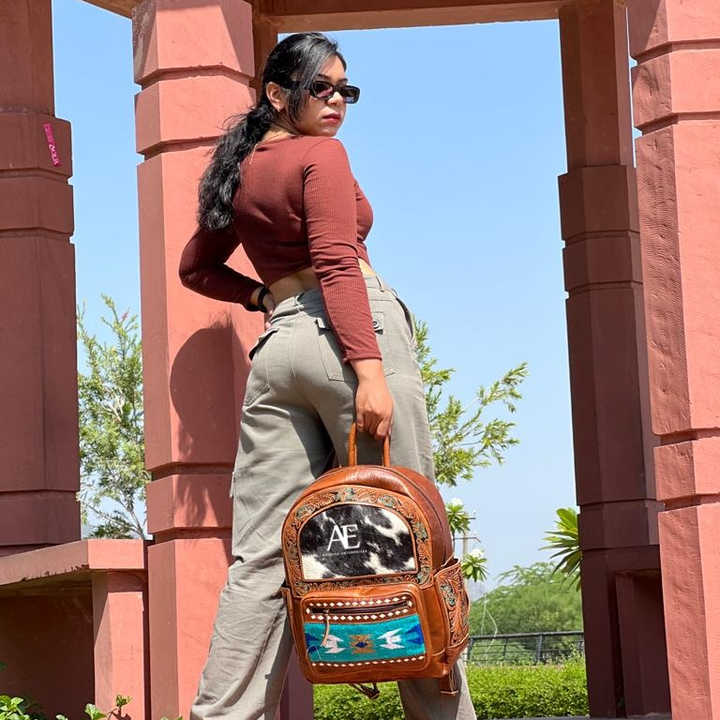 Product name:Tooled Cowhide/Kilim Leather Backpack