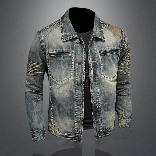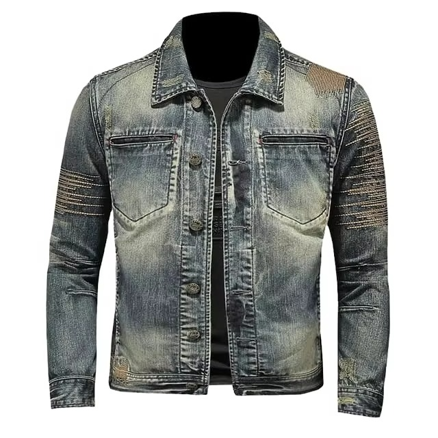 New Stylish Men Full Sleeve Washed Jeans Button Up Vintage Street Wear Slim Fit Custom Top Quality Luxury Denim Jacket For Men