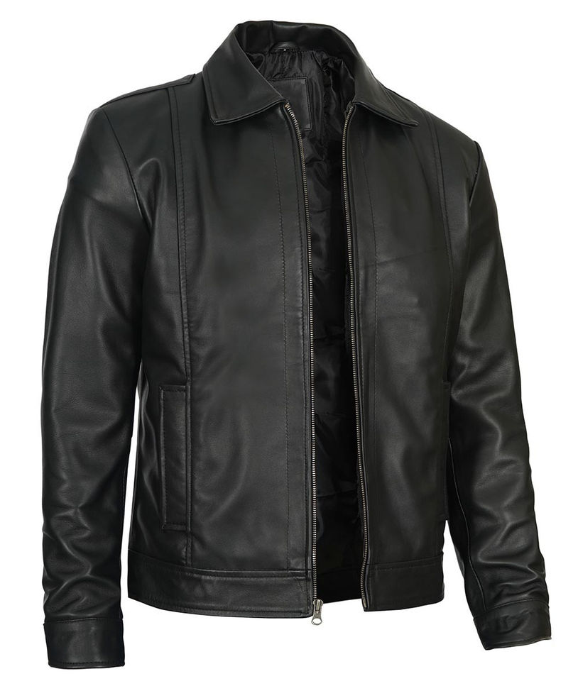 New Stylish Men's Clothing Turn Down Collar Sheepskin Leather Jacket 2025 Top Selling Zipper Closure Leathers Jackets Male