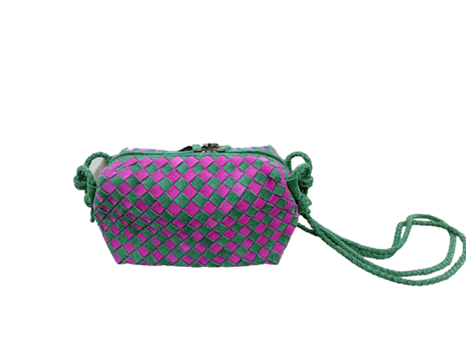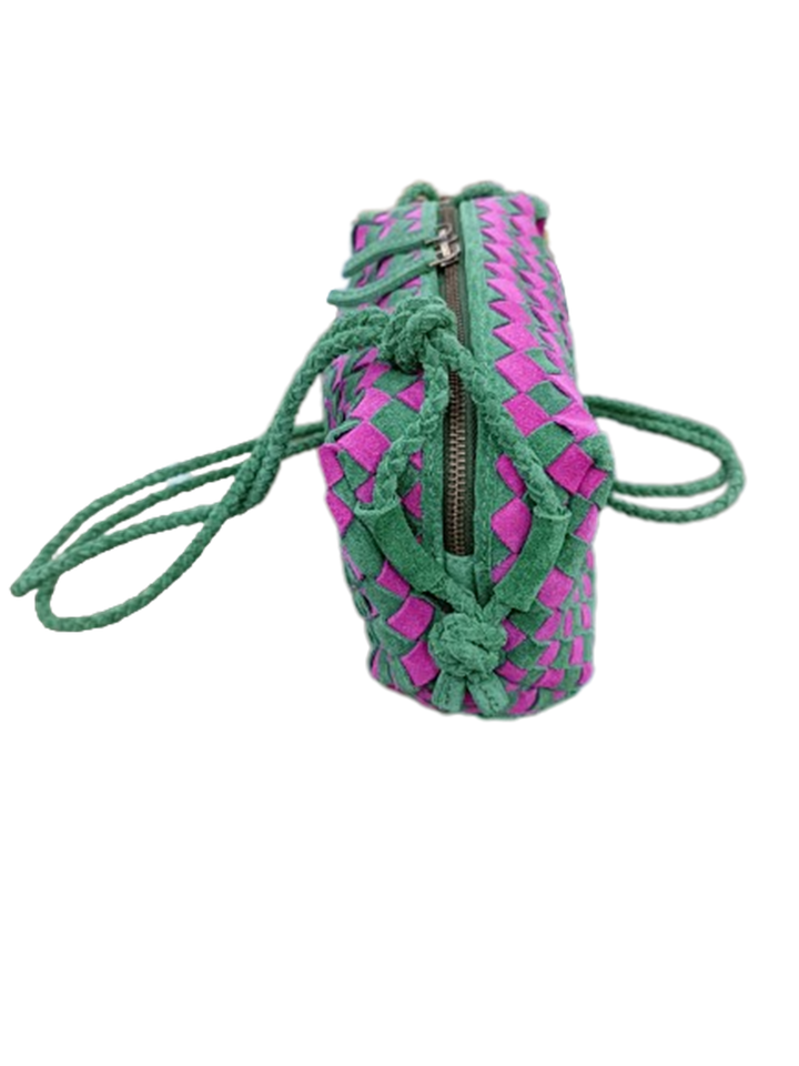 New Stylish Purple and Green Color Outdoor Handwaved Handmade Suede Slouch Shoulder Tote Bag Hobo Style Handbag for Ladies