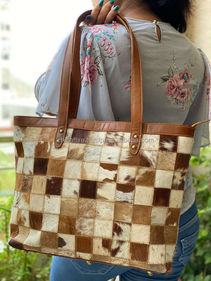 New Stylish Real Handmade Hair on Hide Fur Leather Evening Tote Bags Women Shoulder Bags High Quality Patchwork Shopping Bags