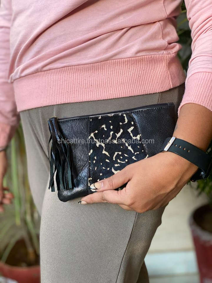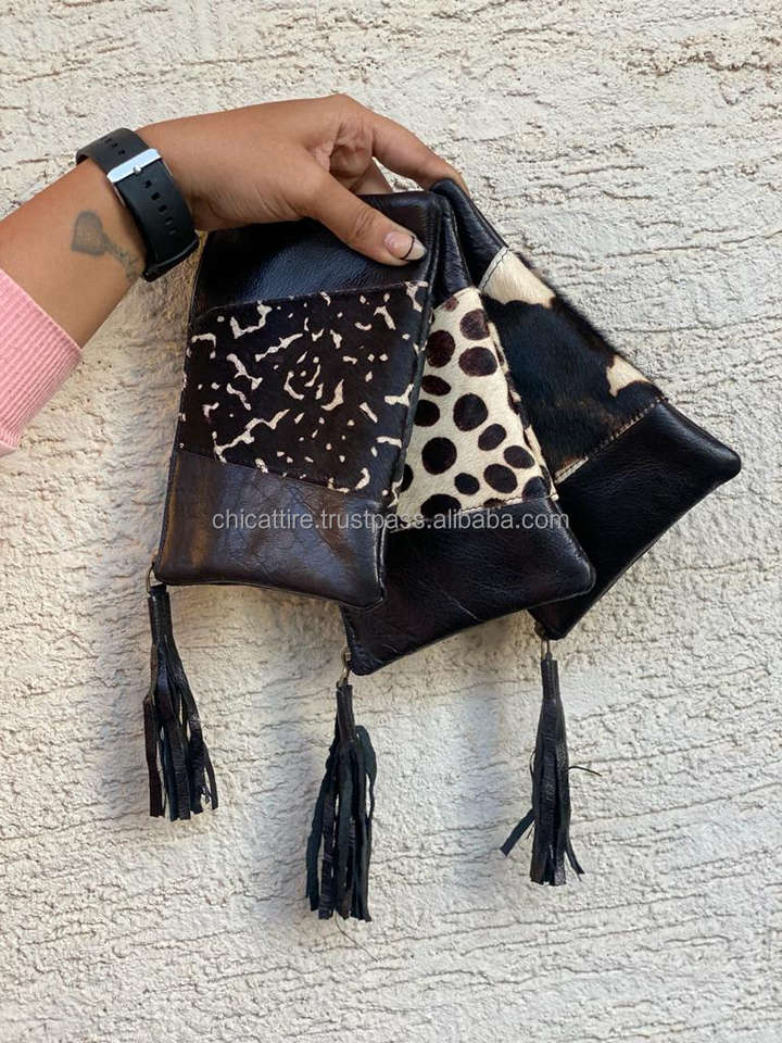 New Stylish Recycled Animal Print Leather Tassels Pouch Unique Personalized Fur Leather ATM Cards Holders Women Trendy Wallets