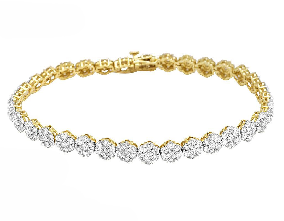 New Stylish S925 Silver Yellow Gold Plated Flower Cluster Classic Style Moissanite Round Diamond Bracelet For Women Jewelry