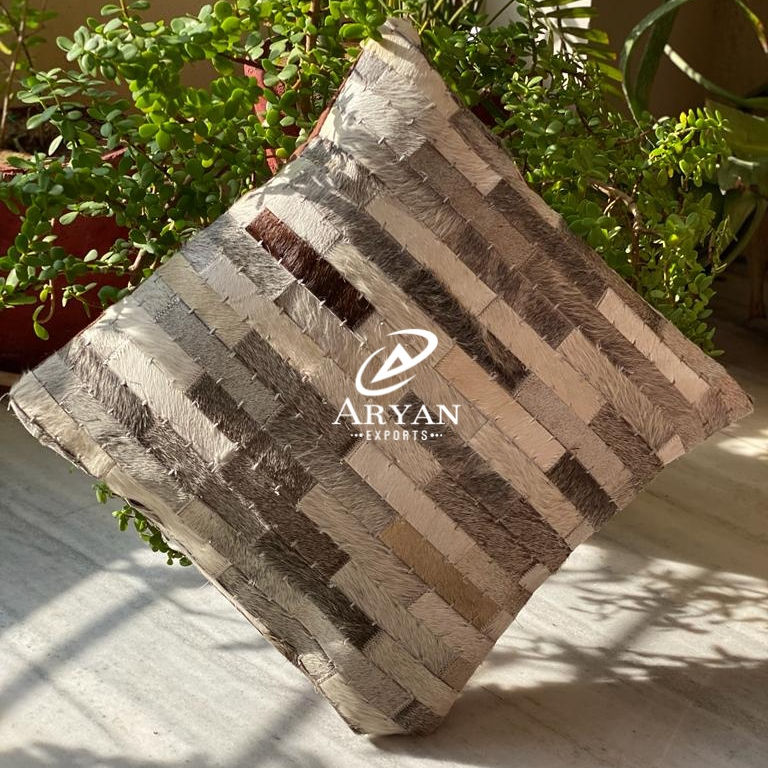 New Stylish Patch Work Genuine Hair On Hide Cushion Cover