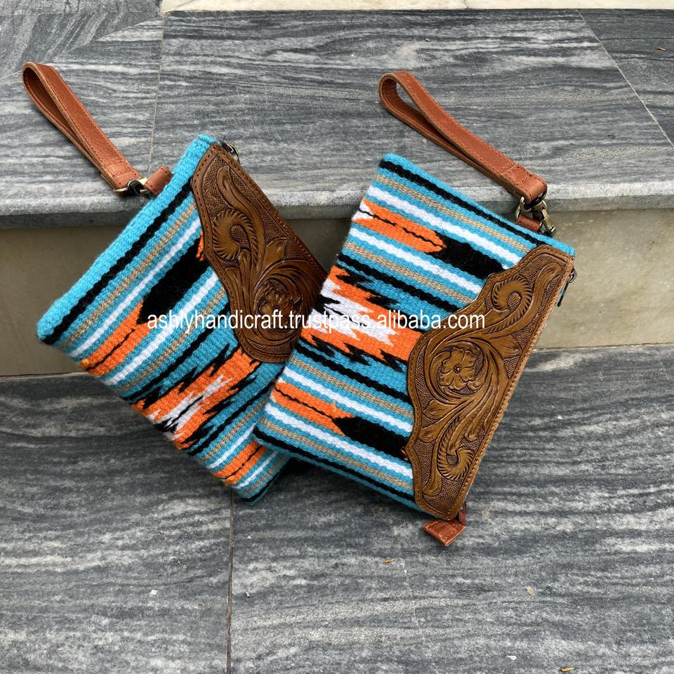 New Stylish Western Hand Tooled Carved Leather Saddle Blanket Wristlet Clutch Hot Sale Stitched Purse Multiuse Women Wallet item