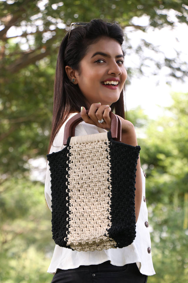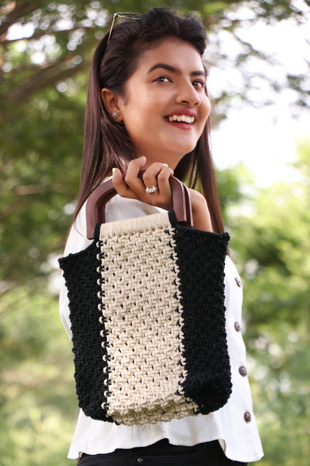 New Summer Beach Bag with Colorful Wooden Handle Woven Crochet Shoulder Bag for Women