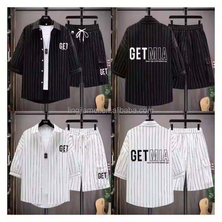 New Summer Casual Men's Short Sleeved Shirt Two-piece Shorts T-shirt Men's Suit Wholesale