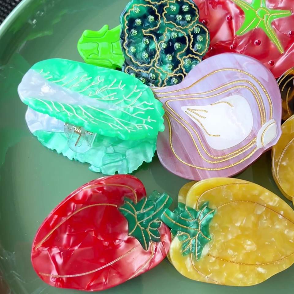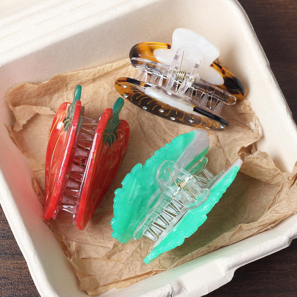 New Summer Cute Fruit Vegetable Acetate Hair Claw Clips - Medium Size Low Bun Holder Sweet Ponytail Clips for Women Bulk