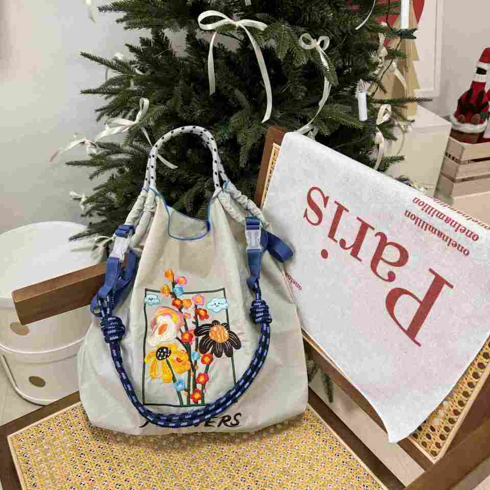 New Summer Korean Nylon String Closure Portable Fashion Large Capacity Shoulder Shopping Bag for Women