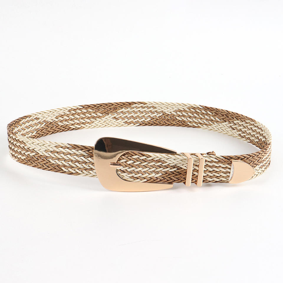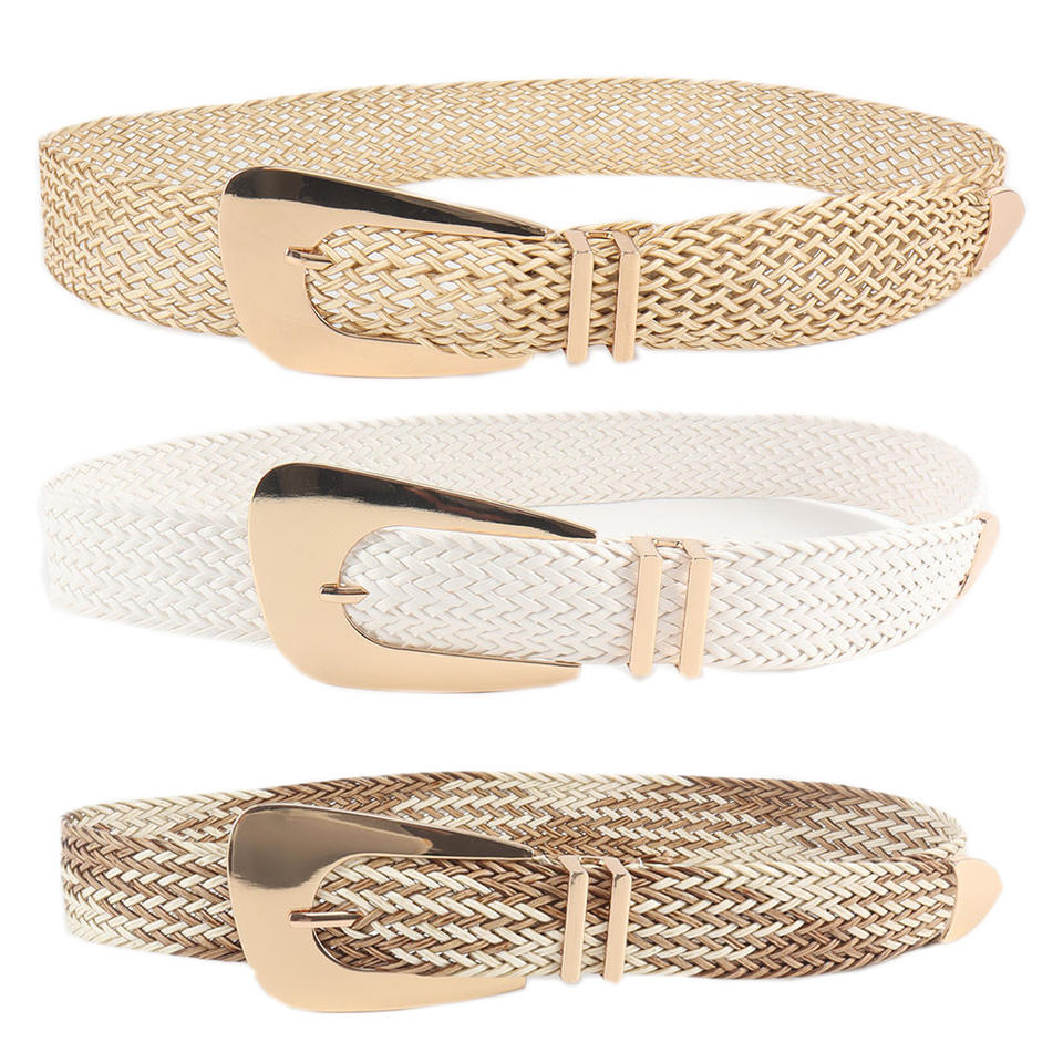 New Summer Ladies Woven Belt Alloy Buckle PP Straw Waist Belt Braided Bohemian Belt for Women Girls Factories in Cambodia