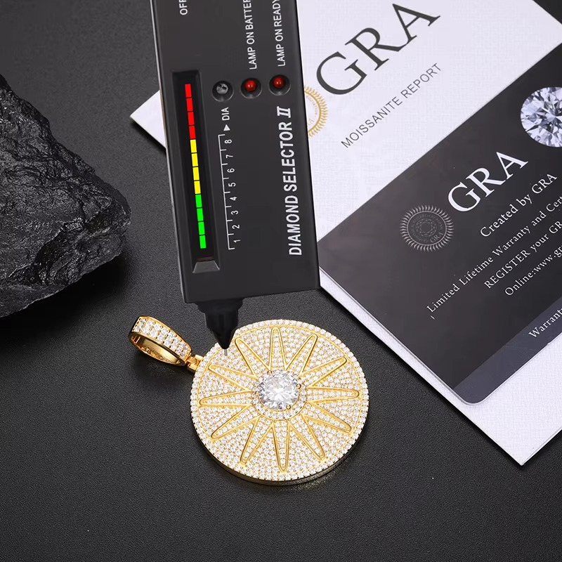 New Sunflower Style 925 Sterling Silver Original Pendant Necklace D VVS1 Moissanite With GRA Certificate for Men