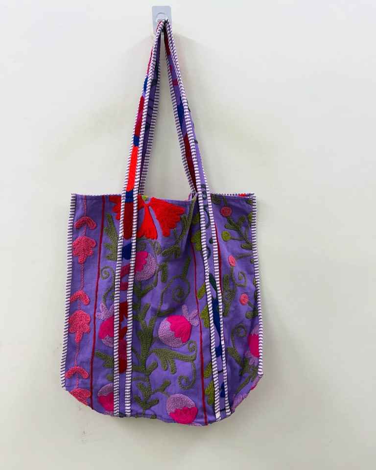 New Suzani Boho Vintage Shoulder Tote Hand Embroidered Cotton Canvas Bucket Bag Dual Handle Women's Shopping Gift for Daily Use