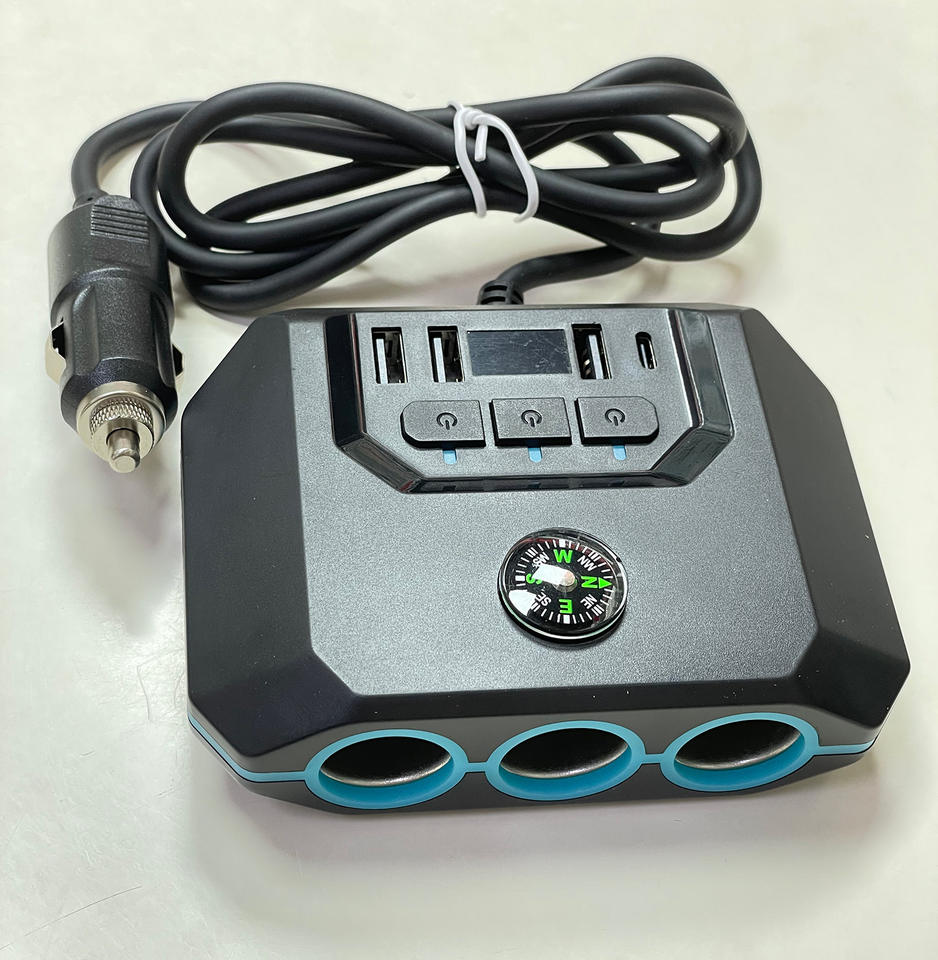 New Electric ABS Car Cigarette Lighter Charger One to Three with Switch Voltage Display & Adapters