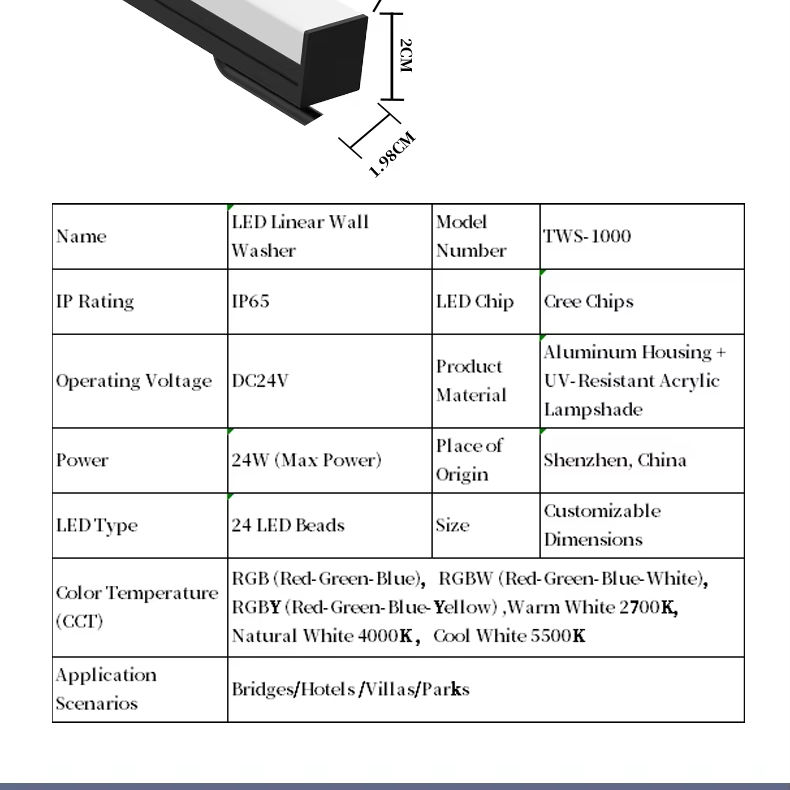 New TWS-1000 Outdoor Wall Washer LED Fixture IP65 Waterproof 1200LM DC24V High Brightness CRI 90 2700K-5000K Color Temp Aluminum