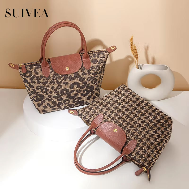 New Thousand Bird Check Leopard Fashion Bag Woman High Quality Trend Handbag Retro Simple Large Capacity Shoulder Crossbody Bag