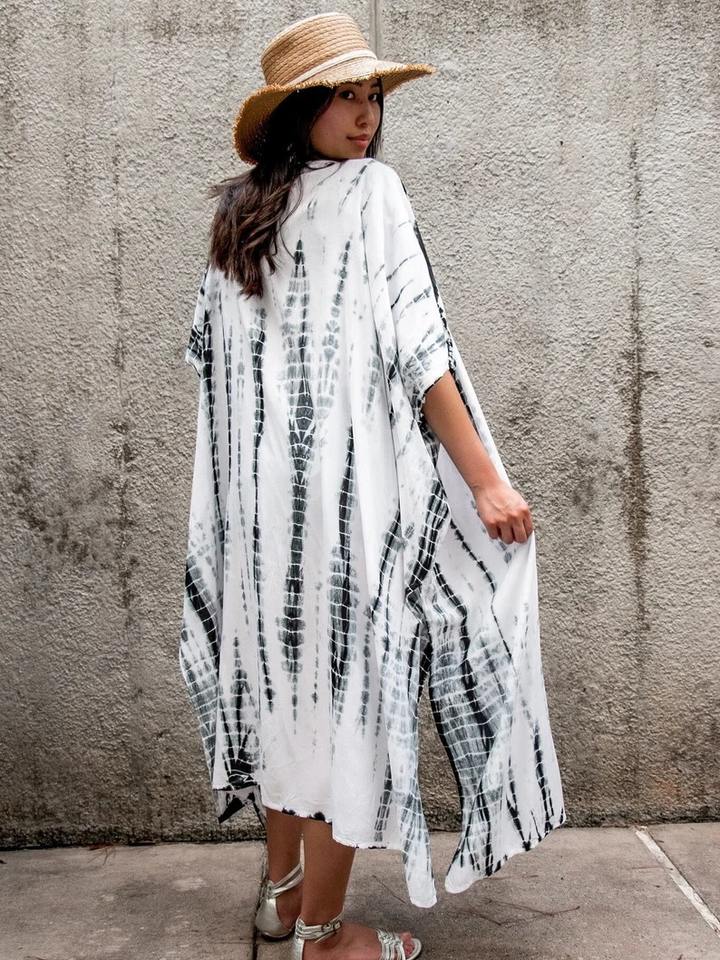 New Tie Dye Boho Style Robe 100% Rayon Fabric Ladies Kimono Beach Bikini Cover Up Long Sleeves Tie Dye Robes Free Size