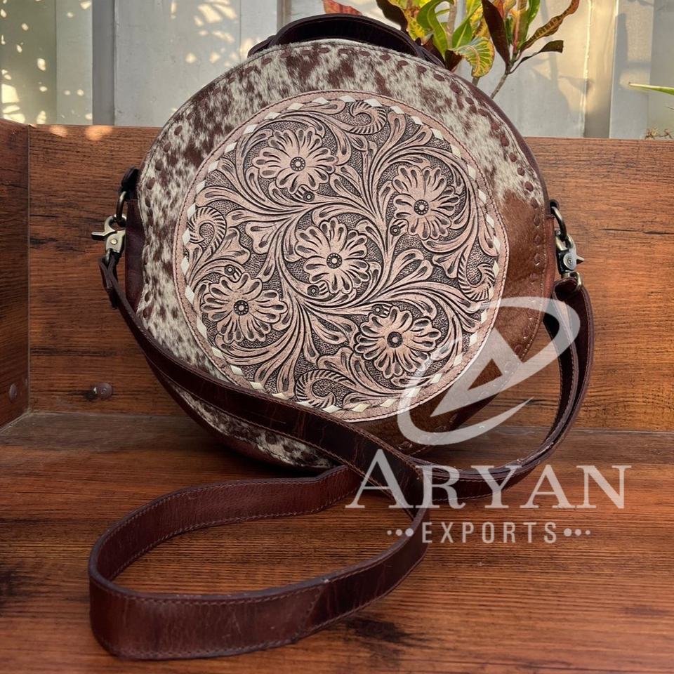 New Tooled Leather Canteen Crossbody Bag with Backpacks for Women Western Cowhide Leather Concealed Carry Large Capacity Handbag