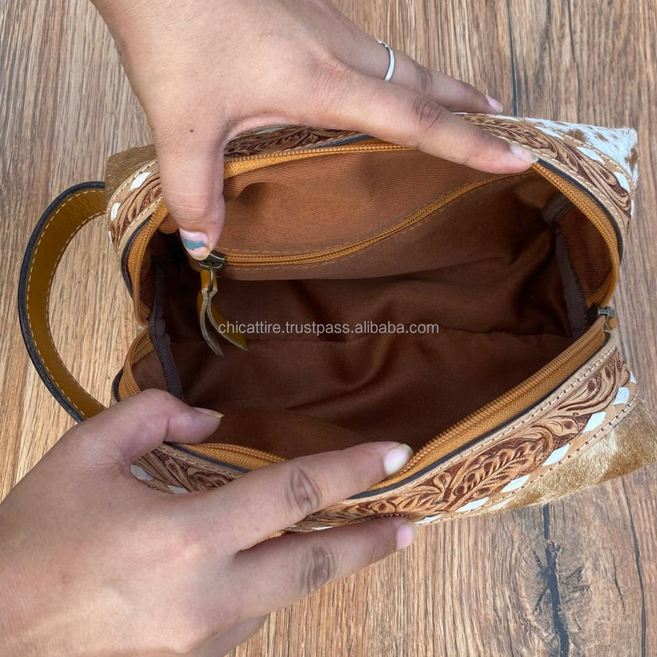 Product name:Hand-tooled Cowhide Women Makeup Bag