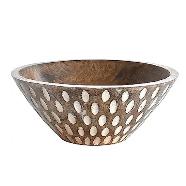 New Traditional Design Mango Wood Bowl With Leaf Design Dining Table Decorative Dish Kitchen Accessories Food Serving Platter