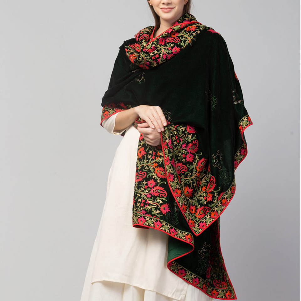 Wholesale New Traditional Ladies Double-Sided Wool Shawl Hand Embroidered Printed Velvet Casual Winter Wear Features