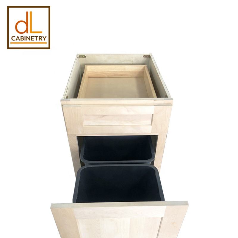 New Trend American Shaker Natural Wood Unfinished Kitchen Waste Basket Cabinets Pullout Waste Bin Drawer Box Drawer Slide