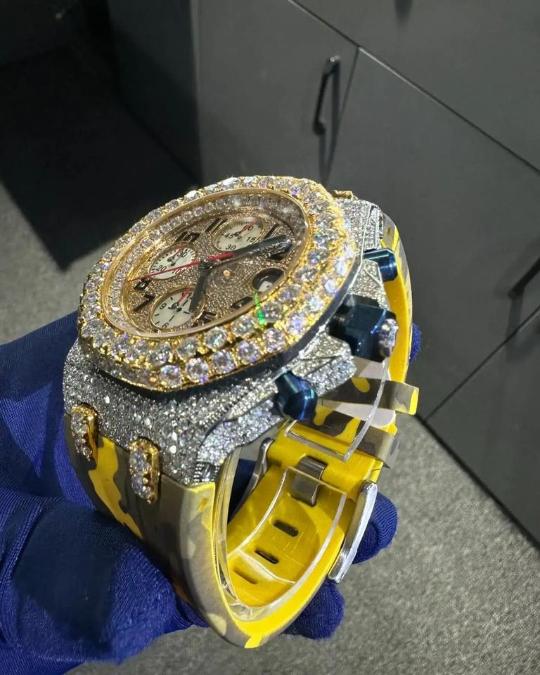 Customised Logo New Trend Design Men's Antiqued Band Watch Customized VVS Moissanite Bezel Iced Out Bust Watches From India