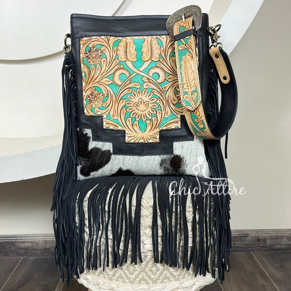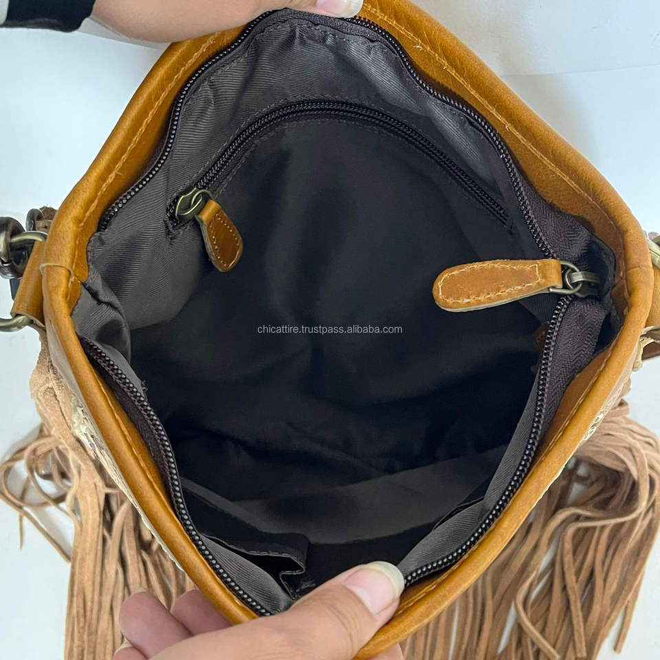 New Trend Luxury Designers Fringe Bag Custom Hand Tooled Cowhide Leather Crossbody Messenger Handbags for Women Zipper Purse
