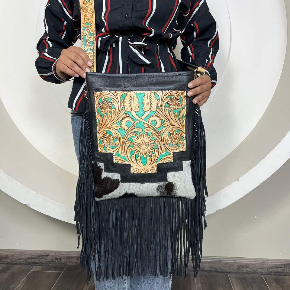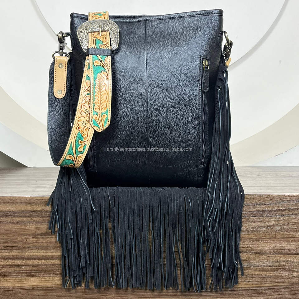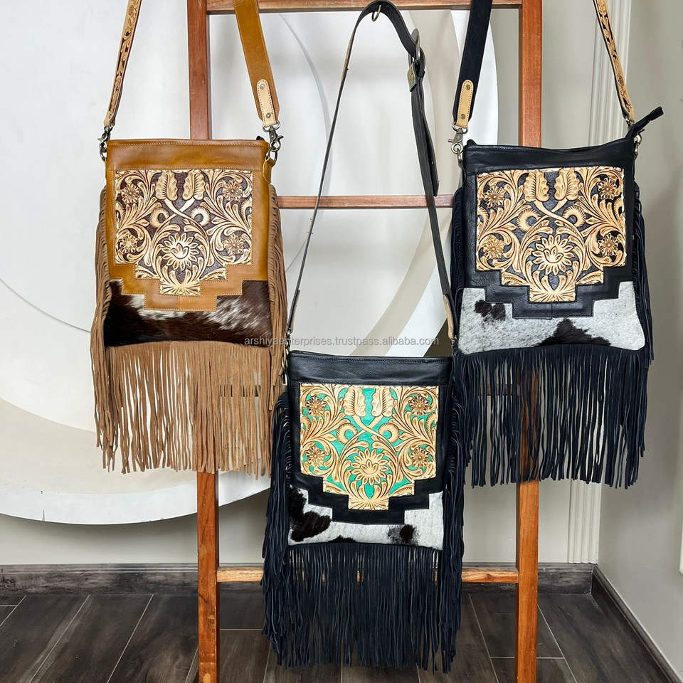 New Trend Luxury Designers Fringe Bag Custom Hand Tooled Cowhide Leather Crossbody Messenger Handbags for Women Zipper Purse