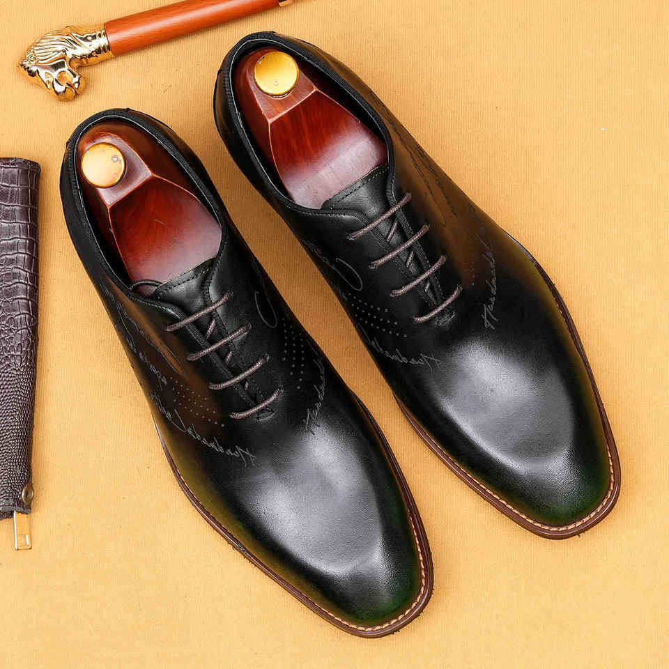 New Trend Men's Leather Closed Toe Waterproof Shiny British Sporty Style Casual Lace-Up Shoes Autumn Winter