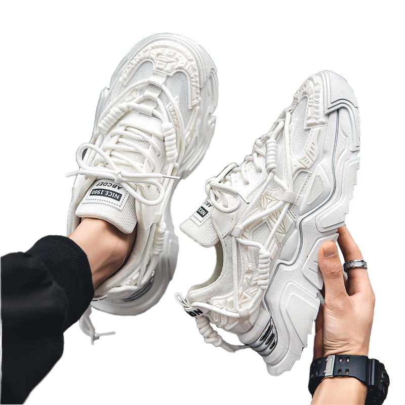 New Trend Thick Bottom Lace-Up Mesh Lining PU Upper Cushioning Chunky Black Men's Casual Sport Sneakers All Season
