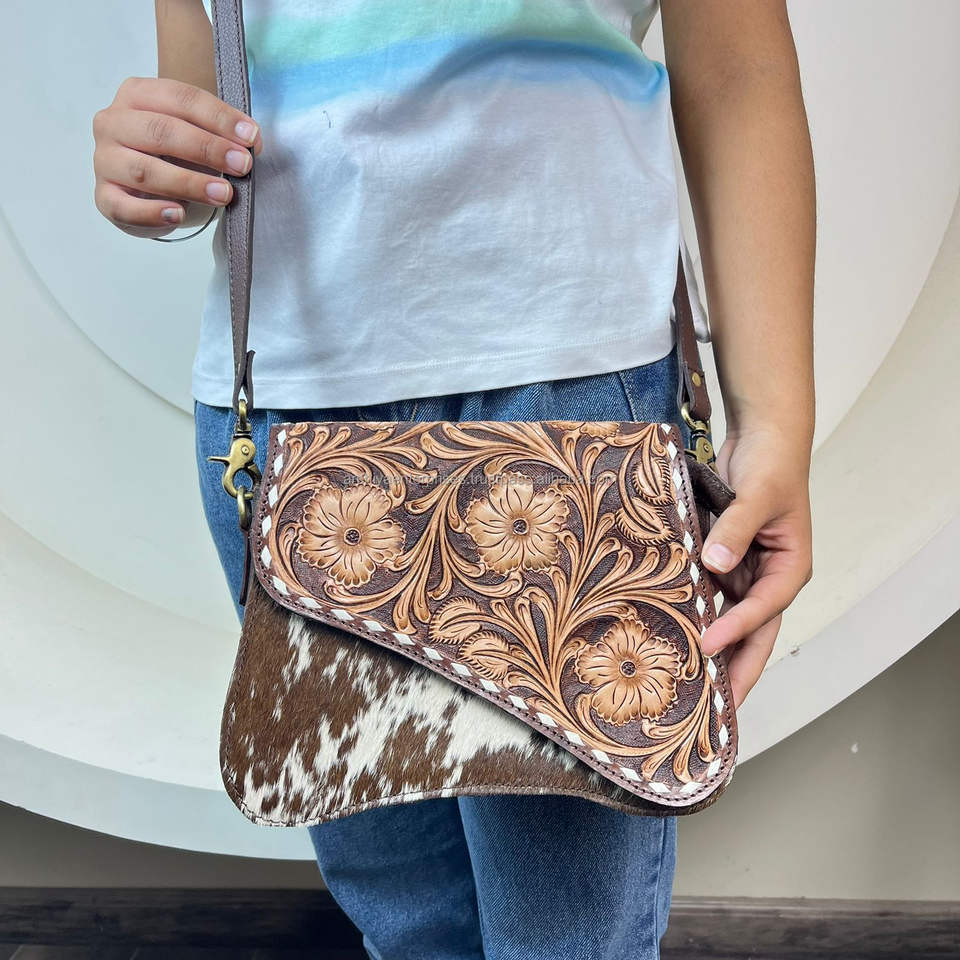 New Trend Women's Large-Capacity Hand Tooled Cowhide Leather Crossbody Sling Handbag Simple Lightweight Versatile Shoulder Bags
