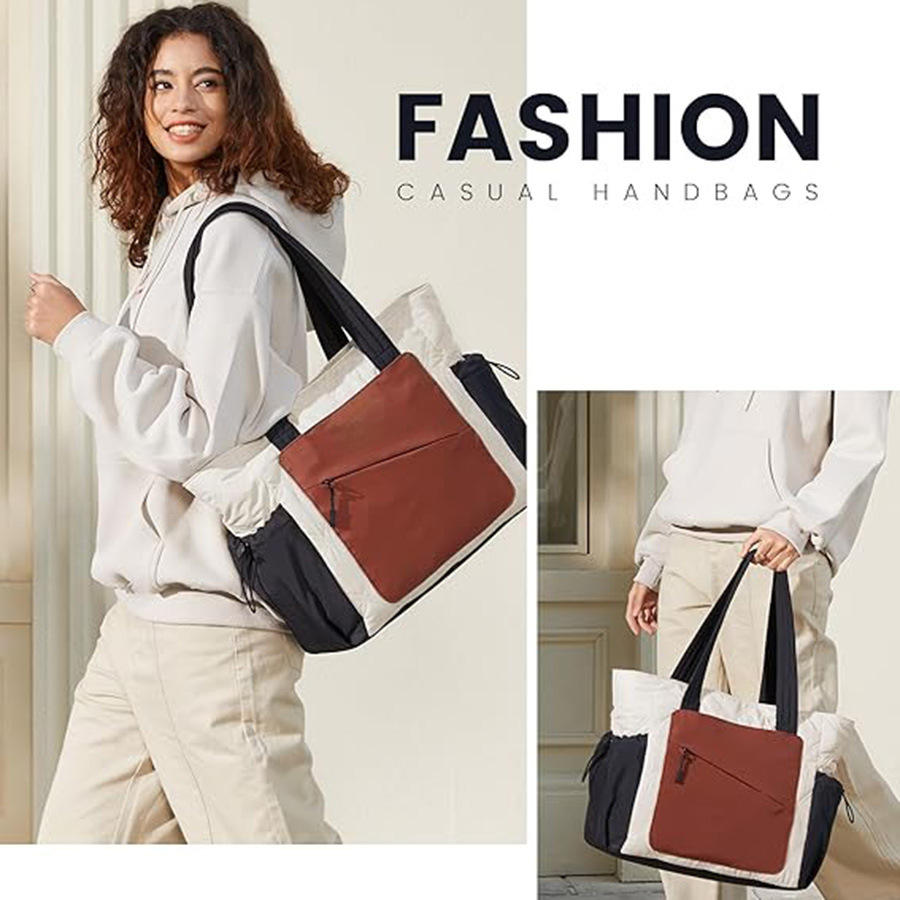 New Trend Women's Large Capacity Lightweight Handbag Multi-Pocket Shopping Bag Polyester Customizable Logo Reusable Fashion Gift