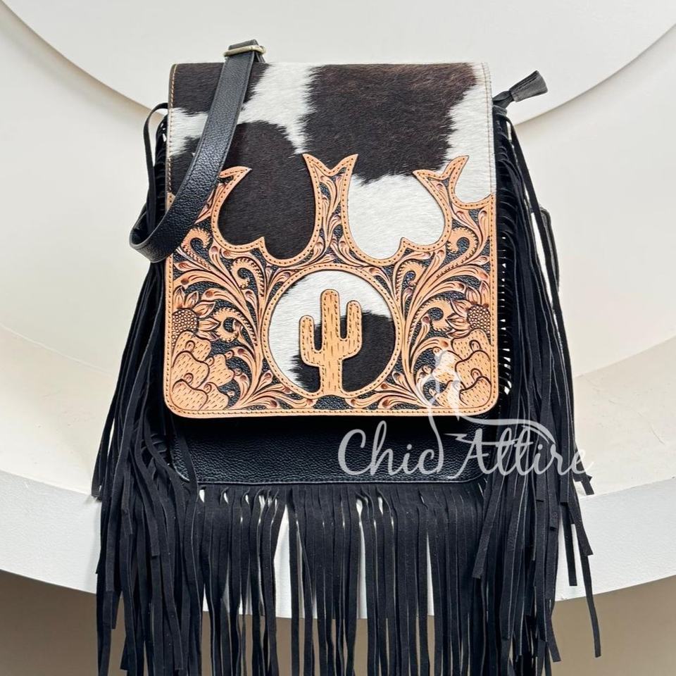 Product name:Hand Tooled Leather Fringe Crossbody Bag
