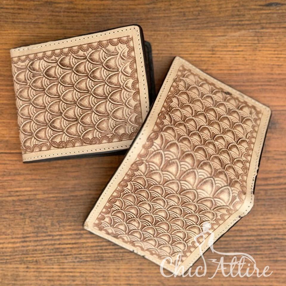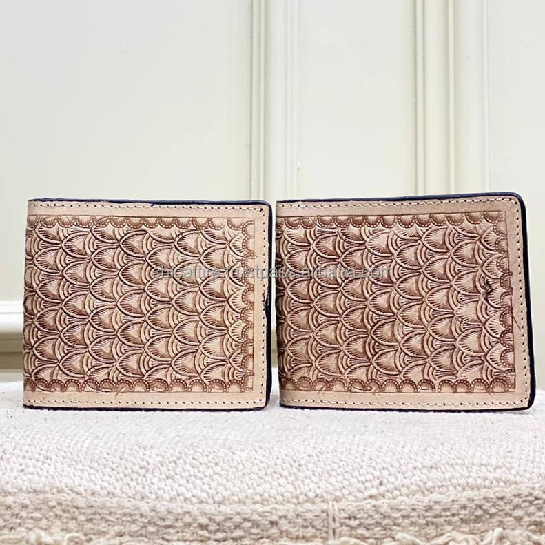 New Trending Hand Tooled Leather Men's Wallet Long Zipper Hot Selling Western Pattern Genuine Leather Card Holder Wallet for Men