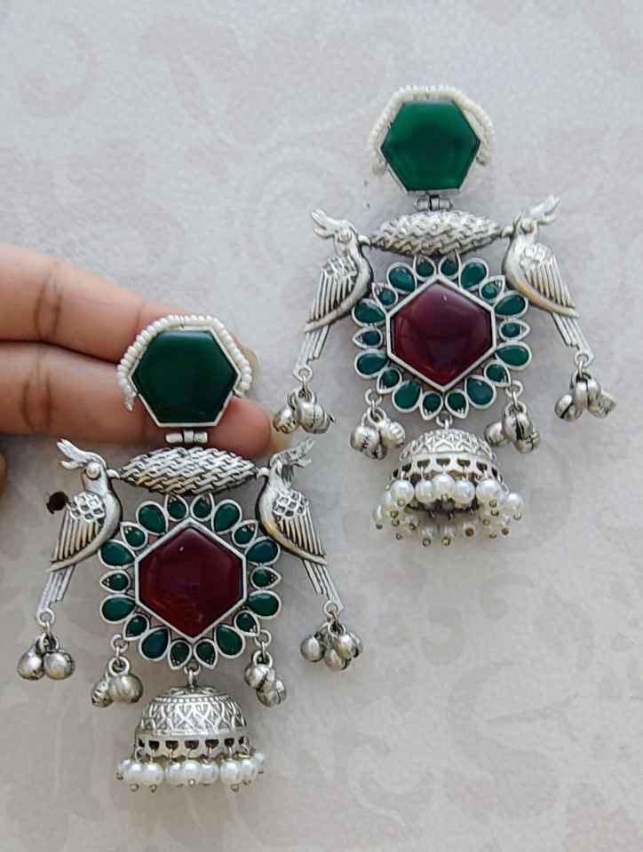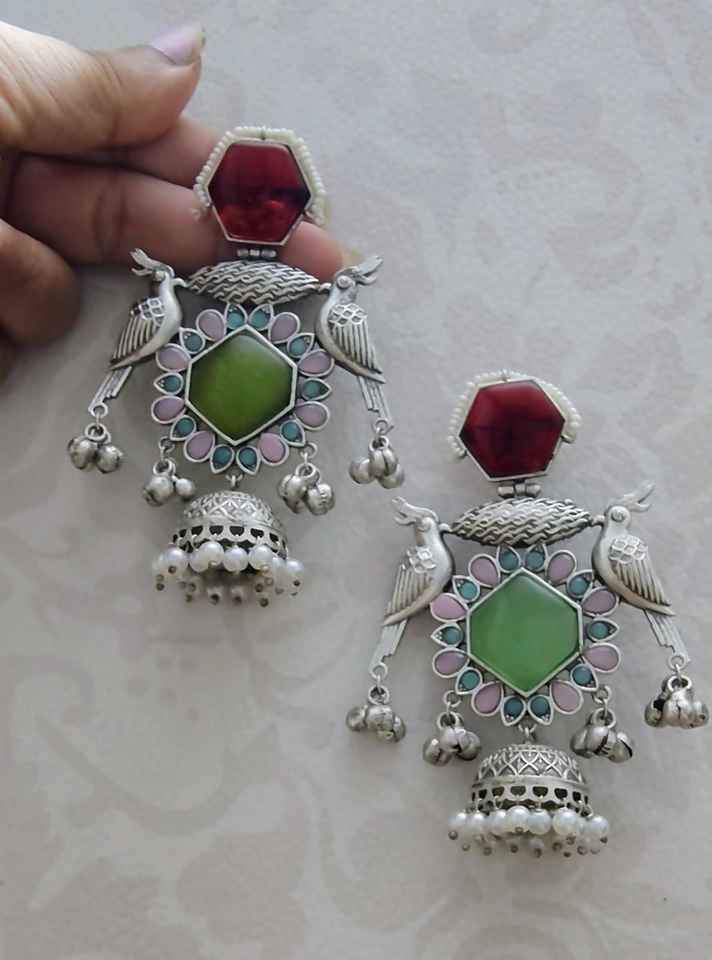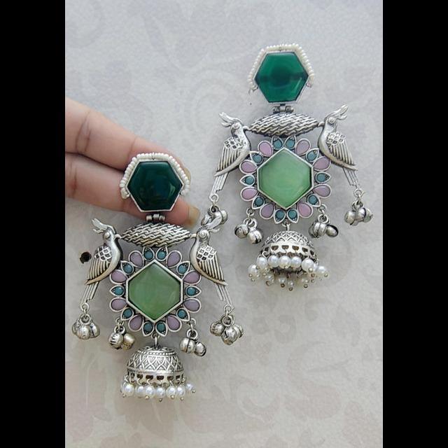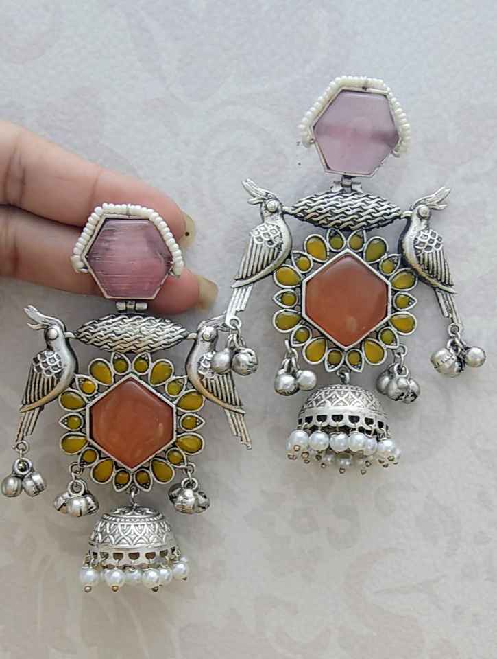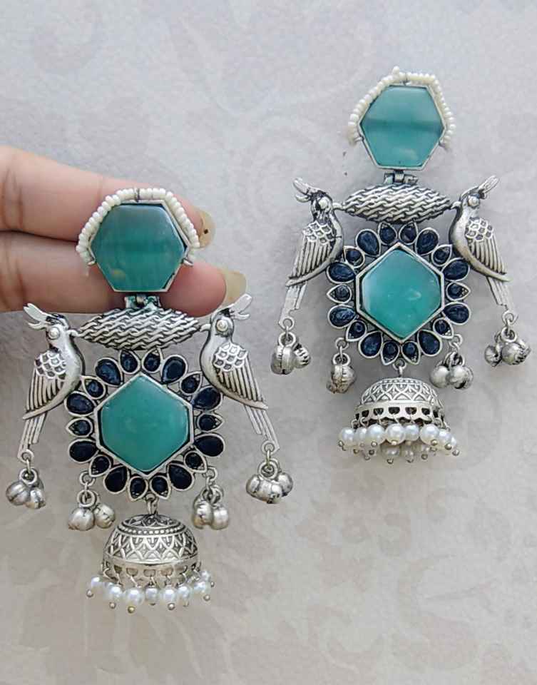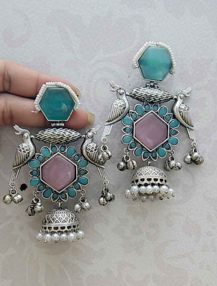 New Trending Monalisa Stone Drop Stud Earring Silver Colour Dangle Earrings Lightweight Anti Tarnish Indian Wholesale Accessory