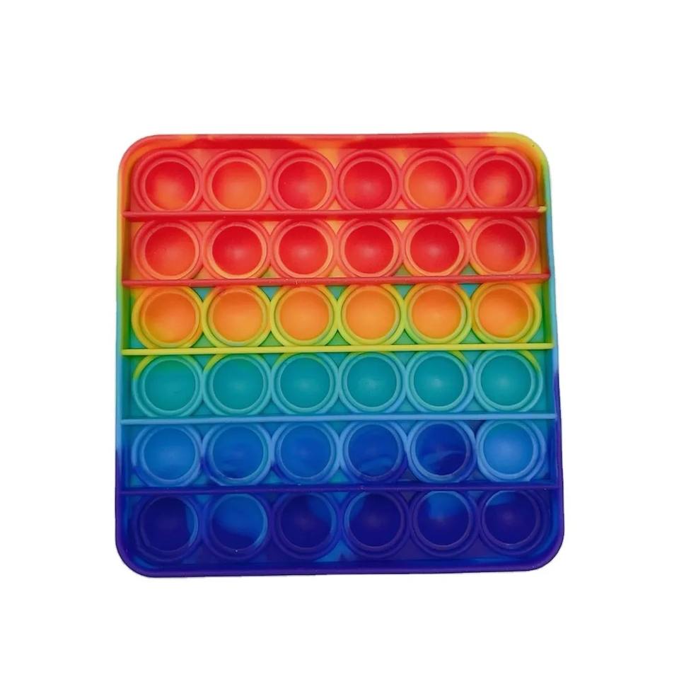 New Trending Rainbow Push Pop Fidget Toy Square Shape Silicone Sensory Bubble Toy for Kids Adults Stress Relief Gift