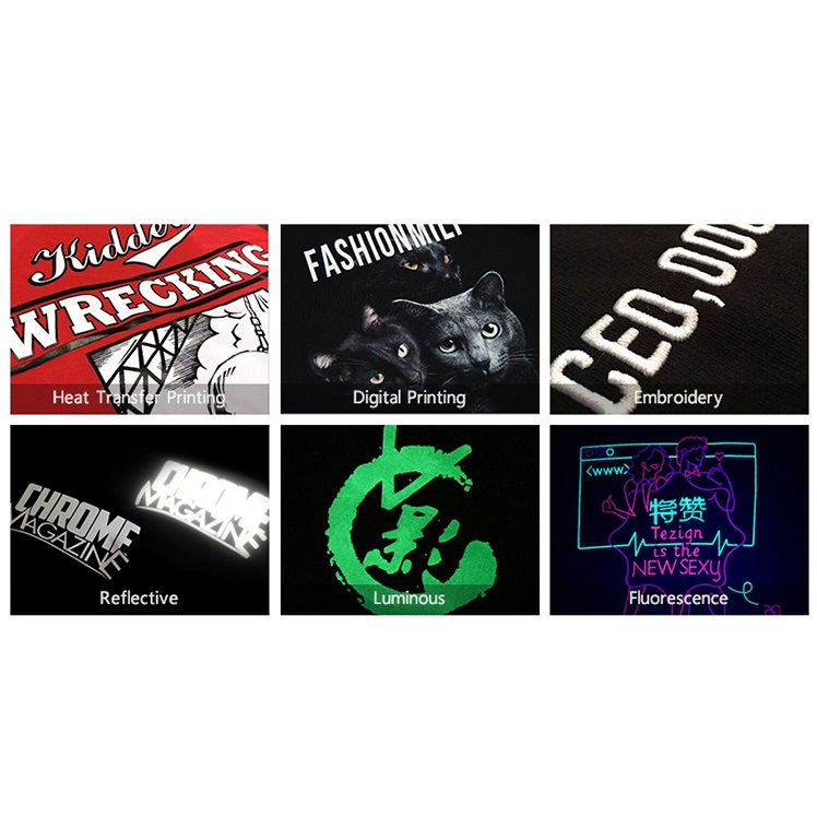Discharge Printing, Puff Printing, Embossed, Heat-Transfer Printing, Digital Printing, Silk Screen Printing