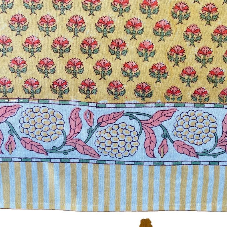 New Trending Yellow Printed Indian Hand Block Printed Tablecloth With Border Design All Around Table Cover for Wedding