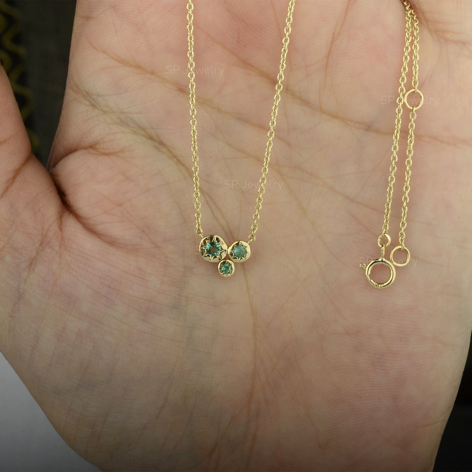 New Trends Charm 14k Solid Gold Necklace Natural Emerald Round Small Star Light Gold Pendant Link Chain Necklace Luxury Jewelry