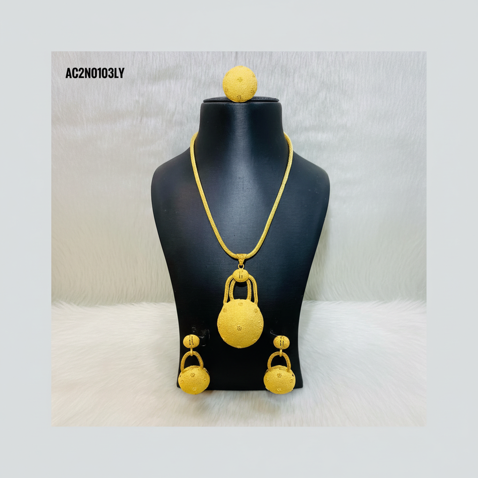 New Trendy 18K Gold Plated Brass Fashionable Long Necklace Set Earrings Rings Floral Shape Pattern One Gram Jewellery for Women