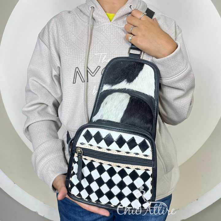 Product name:Hand Tooled Cowhide Checkered Chest Bag