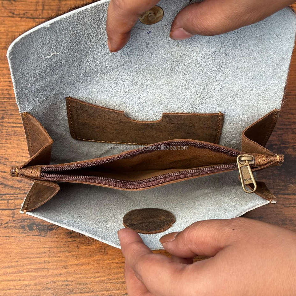 New Trendy Designer Fashion Genuine Cowhide Leather Clutch Purse Wallet Luxury Hair on Hide Leather Wallet Gift for Women's