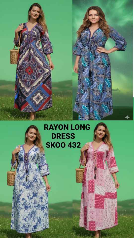 New Trendy Fashionable Wholesale Rayon Floor-Length Bohemian Vintage Floral Women's Elegant Intricate Thread Embroidery Washable