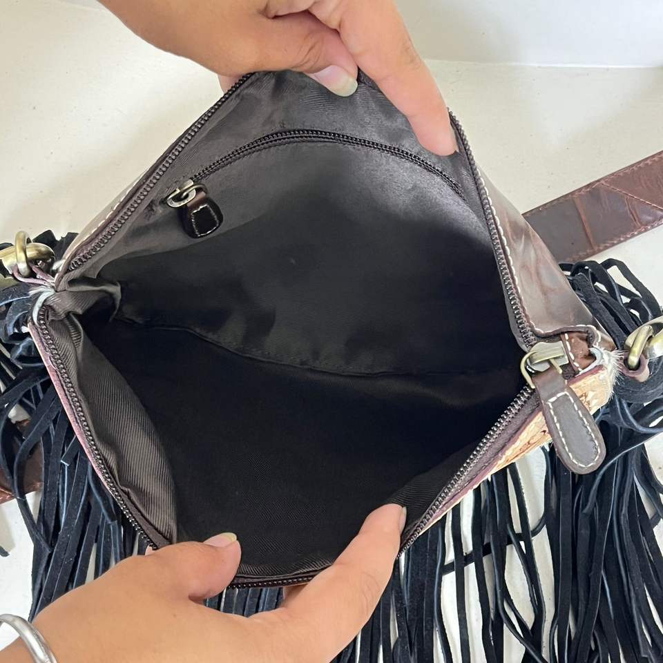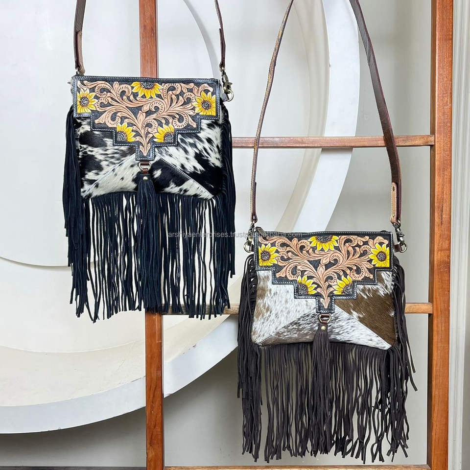 Product name:Hand Tooled Cowhide Leather Fringe Shoulder Bag