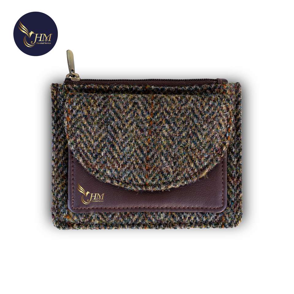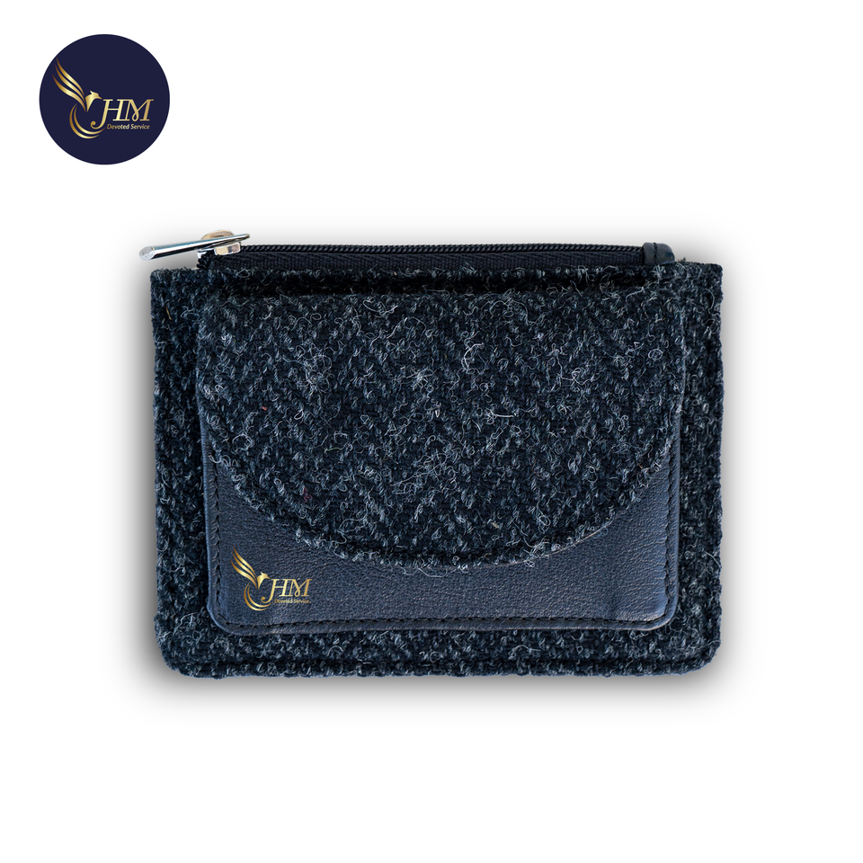 New Trendy Genuine Leather and Tweed Coin Purse with Zipper Fashion Coin Card Holder for Unisex