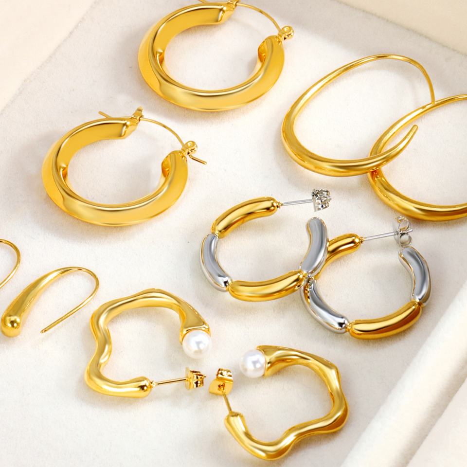 New Trendy Gold Plated Stainless Steel Irregular CC Small Water Drop Pearl Hoop Earrings Jewelry Mixed Color huggies Earrings