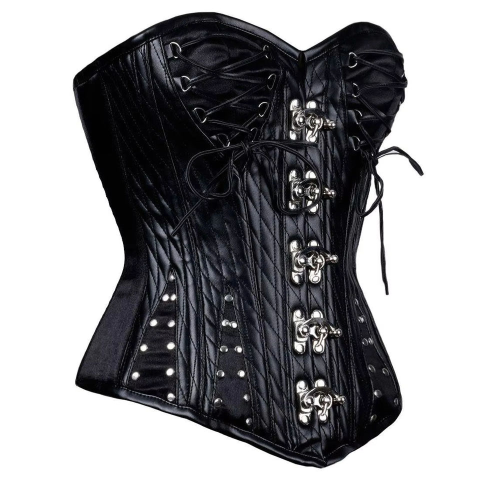 New Trendy Hot Wholesale Top Quality Waist Corsets Plus Size Steel Boned Over Bust Women Sexy Club Wear Leather Corsets